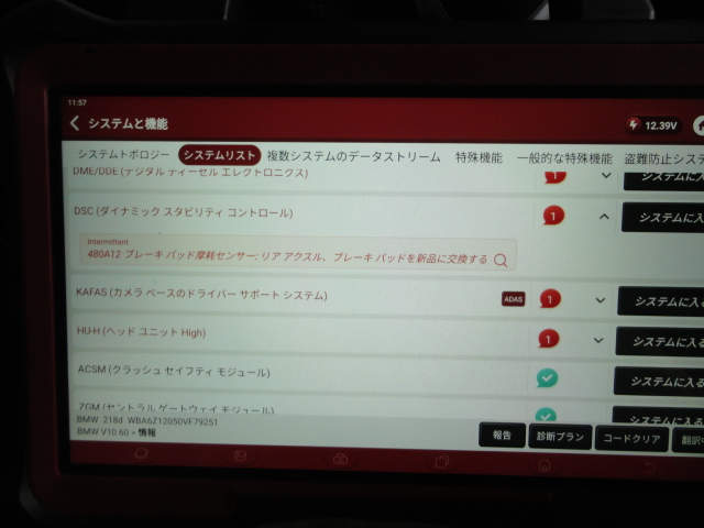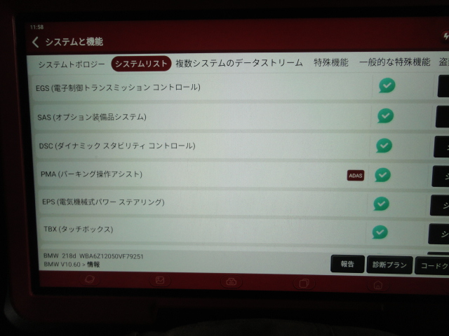コンピューター故障診断機でエラーコードの確認と付属して他の箇所に問題が発生していないかの診断をします。
